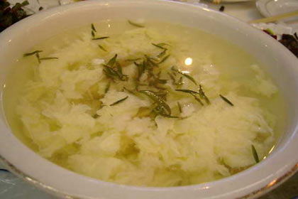 珍貴的“龍井茶”,如果泡過一兩趟水以后就倒掉,實(shí)在有點(diǎn)可惜了。如果用泡過的茶葉做一道“綠茶拌豆腐”的菜肴,在這個初春時節(jié),吃起來倒別有一番橄欖菜的味道,且營養(yǎng)豐富,非常清涼、好吃。