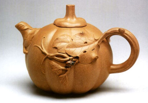 塑器造型一般稱為“花貨”,是對雕塑性器皿及帶有浮雕、半圓雕裝飾器皿造型的統(tǒng)稱。將生活中所見的各種自然形象和各種物象的形態(tài)透過藝術(shù)手法,設(shè)計成器皿造型,如將松竹梅等形象制成各種樹樁形造型?;蛘呤窃趫A器及方器選型上運(yùn)用雕、鏤、捏塑等手法,將自然形體變化為造型的部份,如壺的嘴、把、蓋、鈕,或者是在造型的顯見部位施以簡潔的堆雕裝飾。壺體上這些堆雕,總是要求寧簡勿繁,做到主次分明,以達(dá)到視覺上的和諧與平衡。這種壺藝造型規(guī)則是“源于自然,而高于自然,造型不僅應(yīng)具有適度性的藝術(shù)夸張,又應(yīng)著意于風(fēng)格瀟灑”。例如此類壺藝以松竹梅為裝飾題材時,勁松要刻劃出枝干勁拔,針葉挺秀,氣勢鏗鏘;秀竹則要求嫻靜有致,俊逸瀟灑;冬梅又須主干蒼勁,寒中獨(dú)俏,素枝閑花,以簡為主,達(dá)到疏中見密,少里寓多,富有活力氣息的藝術(shù)效果。所以,紫砂塑器不僅應(yīng)形象生動,構(gòu)圖簡潔,而且應(yīng)巧妙地利用紫砂泥料的天然色澤來增強(qiáng)其藝術(shù)效果。