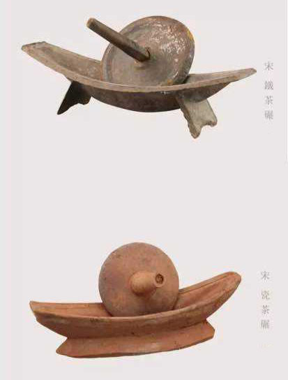宋代采用的是點茶法,茶碾碎后放在盞中用沸水沖著喝,因此對茶末的精細程度要求更高,對茶碾的要求自然也隨即提高。宋代時金屬制的船型茶碾便更受歡迎,因為這種材質和造型的茶碾碾壓后的茶末更加的精細,茶末和水能夠更加充分的融合。