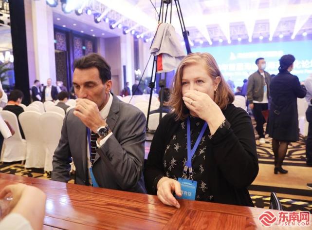 外國友人在論壇現(xiàn)場品茶。 林先昌攝