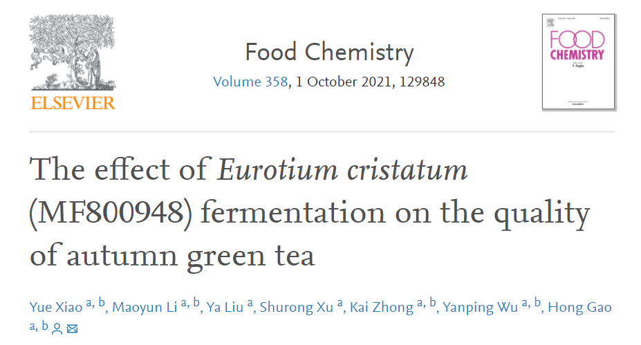 近日,我院高鴻教授團隊以秋茶為原料,利用專利菌株“冠突散囊菌PW-1”進行秋茶發(fā)酵,探究冠突散囊菌PW-1菌株對黑茶品質(zhì)的提升作用及機制,相關(guān)研究成果以我院為第一單位發(fā)表在食品科技領(lǐng)域頂級期刊《Food Chemistry》上,題為“The effect of Eurotium cristatum (MF800948) fermentation on the quality of autumn green tea”。我院博士研究生肖月為第一作者,高鴻教授為通訊作者,該項目獲得了四川省科技計劃項目基金(No. 20ZDYF3186)的支持。
