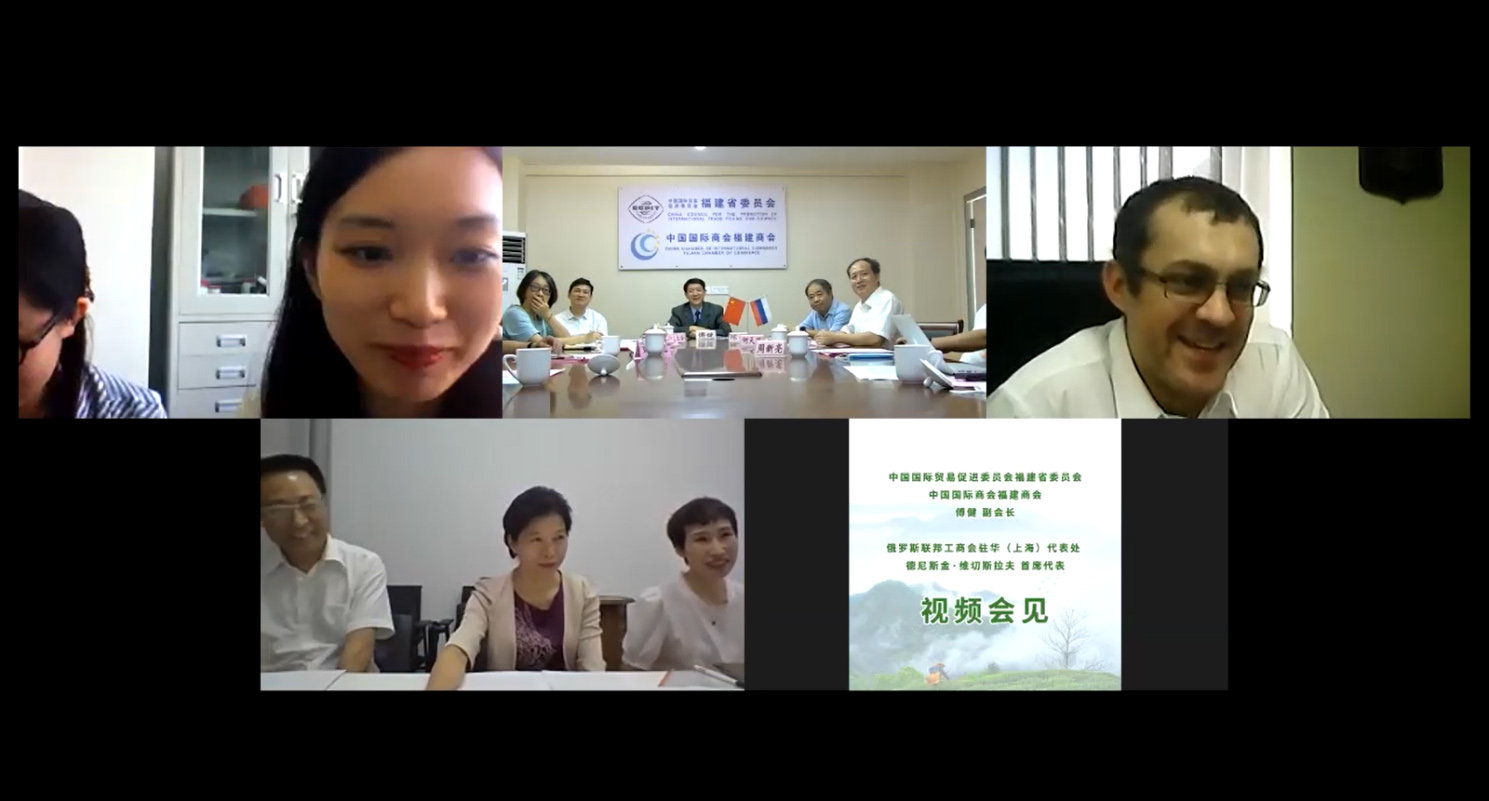 福建省貿(mào)促會(huì)與俄羅斯聯(lián)邦工商會(huì)駐滬代表處視頻會(huì)見現(xiàn)場(chǎng)