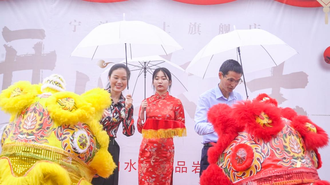 秋雨瀟瀟,巖茶幽幽, 幽香拂面,紫氣兆祥。“巖上”品牌寧波店大門口花籃簇?fù)怼⑷祟^攢動;臺上紅黃雙獅舞動、雙人點(diǎn)睛。幾百位“巖上”品牌茶愛好者絡(luò)繹不絕,現(xiàn)場人流如潮,1至3層的“巖上”品牌店里的茶客摩肩接踵。